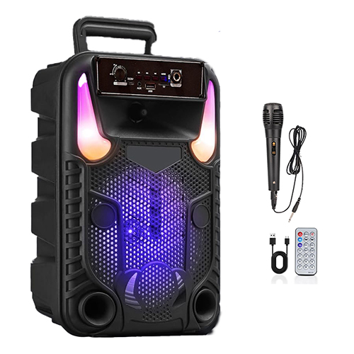 اسپیکر بلوتوثی پورتابل QL-1812 تک باند 8 اینچ كيفيت صدای خیلی خوب دارای نمایشگر دارای میکروفن سیم دار رقص نور خروجی میکروفن